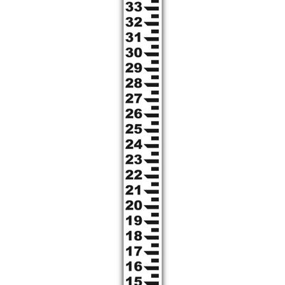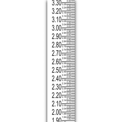 Style I staff gages feature graduated marks every .25 inches. Numerical marks are printed every inch. Style I comes in standard sections, each 2.5 inches wide, with heights available in 14, 18, 24, 30, 36 and 48 inches.