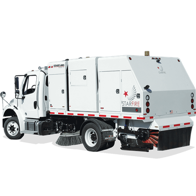 The Starfire S-4XL is a robust dual-engine mechanical broom street sweeper known for its heavy-duty capabilities and a 4.5 cubic yard hopper. It’s mounted on a mid-sized conventional chassis with a GVWR of 26,000 lbs, and does not require a CDL to operate. Designed for rigorous daily use, the S-4XL is well-suited for tasks like chip seal, millings, spring clean-up, and highway sweeping. It features an off-set hydraulic elevator drive motor, case drains for all hydraulic motors to mitigate seal pressure leaks, and a vertically adjustable control panel that supports one-touch sweeping. The unit includes a sealed NEMA 4 enclosure for protected electrical components, and massive “X” style lift scissors for exceptional hopper stability. Additional features include a high dump hopper, a 330-gallon water system with multiple spray nozzles, an auto-pivoting elevator, and a 59 HP turbo-charged diesel engine. The sweeper also benefits from electric-over-hydraulic systems, a 3-shaft elevator for extended chain life and reduced maintenance, and a color camera system that improves operational safety. Lockable canopies safeguard components from environmental exposure and vandalism.Regenerative Air Sweeper Trucks