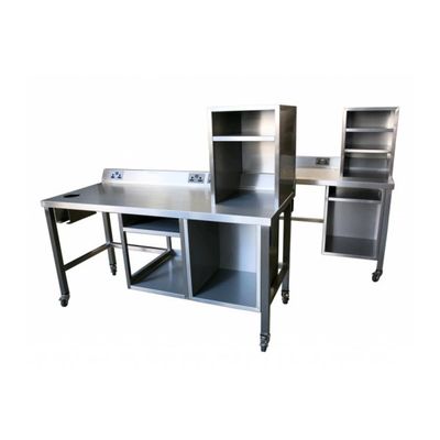 Demonstration Unit Custom Designed and manufactured to demonstrate small air tools at international trade fairs. A compact design to ensure ease of movement and robust to endure long haul travel. The unit has its own vice and mesh base to collect swarf from demonstrations. Lockable doors for security.