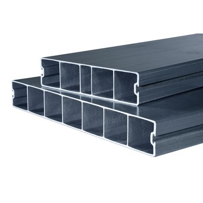 COMPOSOLITE is a patented advanced composite building panel system suitable for major load bearing structural applications. The modular construction system consists of a small number of interlocking fiber reinforced polymer (FRP) structural components produced by the pultrusion process. The main building panels are 3.15" (80mm) thick and either 23.68" or 13.70" (601.5mm or 348.0mm) wide and feature a cellular construction. Through the use of toggles and/or hangers, panels can be connected to one another, to 3-way connectors, or to 45 degree connectors.