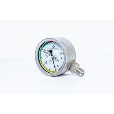The Stainless Steel industrial Pressure Gauge consists of a pressure-guiding system (including connectors, spring tube, etc.). a gear transmission mechanism, an indicating device, and a housing. All components are made of stainless steel. When the spring tube is subjected to the pressure of the measured medium, its end undergoes corresponding elastic deformation, which is amplified by the gear transmission mechanism and displayed on the dial by the indicating device. The Stainless Steel Industrial Pressure Gauge`s housing is sealed, effectively protecting the internal components from environmental influences and contaminants. Furthermore, the oil filling inside the housing provides resistance to pressure fluctuations of the measured medium and severe vibrations in the operating environment, ensuring both corrosion resistance and shock resistance.