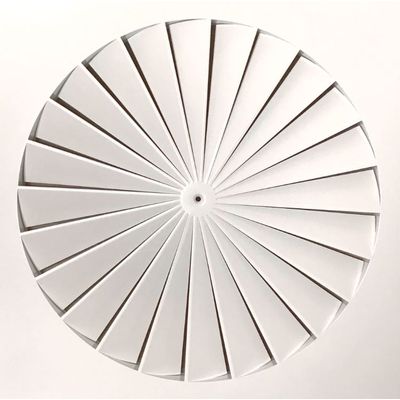 The PDA-R (round front panel) and PDA-Q (square front panel) are swirl diffusers with fixed delicately stamped, radially arranged blades. The square diffuser PDA-Q may be perforated in two different variants. The blades of the variants Q1 and Q2 are slightly less delicate in their perforation. The front panel is mounted by a central screw.