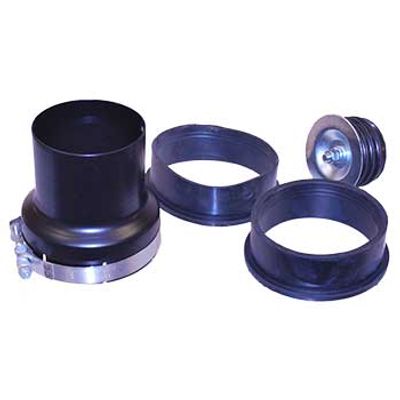 Installation kit to adapt 4-inch precleaner to either a 4.5, 4.75, or 5 inch inlet using metal expansion adaptors and rubber insert ring. Includes dump valve port plug for air filter housing. Precleaner is NOT included.