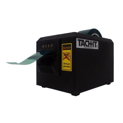 This heavy duty automatic feed and cut definite length tape dispenser can work with 1 roll of tape up to 2 inch wide or 2 rolls of tape up to 1 inch wide each. As the most durable definite length dispenser due to the all metal internal components, the 6115 is reliable and easy to use with push button and LED controls and 4 programmable memory presets. The Tach-It Model 6115 can cut most types of pressure sensitive tape from 1/2 inch to 39.3 inches in length. The 6115 has 3 modes. In random mode, the operator presses the feed button until the desired length of tape is fed and then presses the cut button to cut the tape.