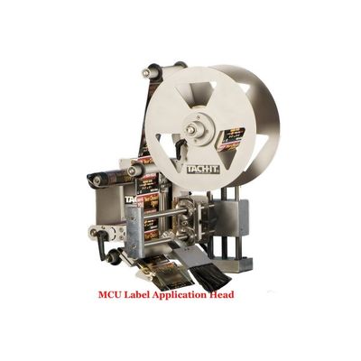 Realizing a need in the market for a machine between automatic label dispensers and a full inline labeling system, Tach-It created our MCU wipe-on label application assembly and control systems that can be mounted over existing conveyor systems. Having full touch screen controls including; 5 memory presets, dwell timer for exact label placement and target counter. the MCU Label Applicating Assembly offers an inexpensive way to automate any labeling operation where there is an existing conveyor. Easy to mount, the label head uses a non-contact sensor to detect the label and can use labels up to 5 inch wide and 11 inch long. Using stepper motor controls, the control system has adjustable motor speed to match the conveyor speed to ensure smooth applicaton of the label in the precise desired location. If portability is important, we offer the MCU wipe-on label application assembly and control system with a movable and adjustable stand.
