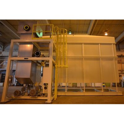 Taikisha USA offers our unique horizontal cardboard filter underbooth technology, used to capture paint mist overspray. A paint booth can utilize one of three main types of scrubbers: Dry Filter (i-Dry): There are several varieties of dry filter booth, depending on the amount of paint to be sprayed in that zone. A heavy-use dry filter spraybooth may feature up to three different layers of paint capture filters, starting with large-gap paper filters, next using a fiber-based bag filter or pocket filter, and finally utilizing a 99% HEPA filter to catch the finest particulates. Dry filter booths are the simplest type of paint spray booth, but they are susceptible to clogging quickly if the paint applicator has a low transfer efficiency (lots of overspray).