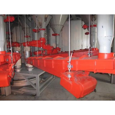 Characteristics: Driven by two rotary vibrators. Operation possible with 2, 4, 6, or 8-pole configurations. Robust equipment. Simple maintenance. Tray design tailored to customer requirements.