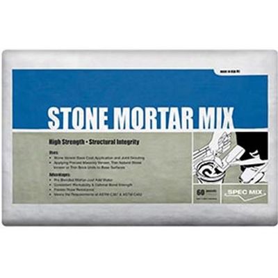 TCC Materials Stone Mortar Mix (BOM #109043) is a specially formulated product for use in applying precast masonry veneer, thin natural stone veneer or thin brick units to base surfaces. This versatile product may be used as an initial base coat for your project, then can be used in applying masonry veneer to the substrate. The material is factory blended to ensure bond strength, workability and consistency. To mix, just add water. Follow the stone installation instructions provided by the manufacturer. Available in a 60 lb. (27.2 kg) bag.