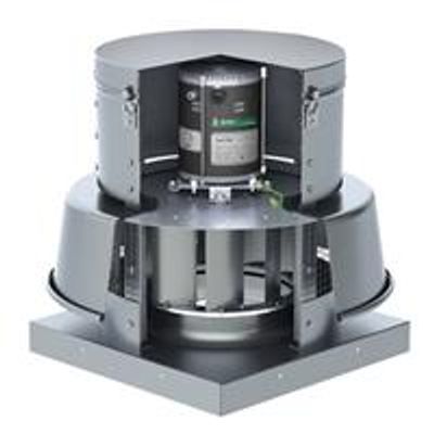 The DCRD Centrifugal Roof Exhauster is designed for roof mounted exhaust of relatively clean air in a wide variety of industrial and commercial applications. The DCRD features a high efficiency, non-overloading backward inclined centrifugal wheel precisely matched to a deep spun venturi. The wheel, motor and drive assembly are completely isolated from the fan supports by rubber isolators to reduce transmission of noise and vibration. The top cap also provides complete protection for the motor and drive assembly while allowing quick access to these components without the need for tools.