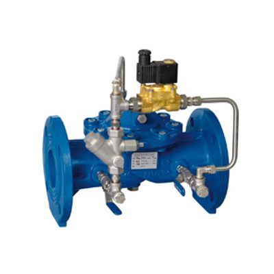 This valve controls water level in high level reservoirs to avoid overflow, without any external control system like float control etc. The valve remains completely open until the closing input is transmitted by the 3-ways piezometric altitude pilot.