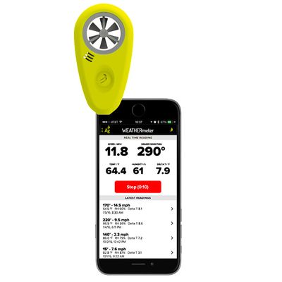 The Weatherflow WEATHERmeter is a precise, compact weather device designed to interface with smartphones for real-time measurements of wind speed, temperature, humidity, and atmospheric pressure. It supports a range of compatible applications, including the free Wind & Weather Meter app, facilitating instant sharing of weather reports through email, SMS, and social media platforms such as Twitter and Instagram. WEATHERmeter connects wirelessly using Bluetooth Smart technology, maintaining a connection up to 100 feet away. It is compatible with Apple iPhones 4S or newer, iPads Generation 3 or newer running iOS 6.0 or later, as well as with Android devices using version 4.3 (Jelly Bean) or newer that support Bluetooth Smart Ready. The device has applications spanning multiple sectors including maritime, agriculture, and more, offering reliable weather data capture and sharing capabilities.