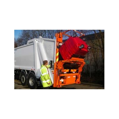 Kit version of the robust TL1280 lifter used on the Terberg Toploader, designed for mounting onto vehicle bodies to side and/or rear providing a binlift solution for up to 1280 litre wheeled bins that loads the body from the roof.