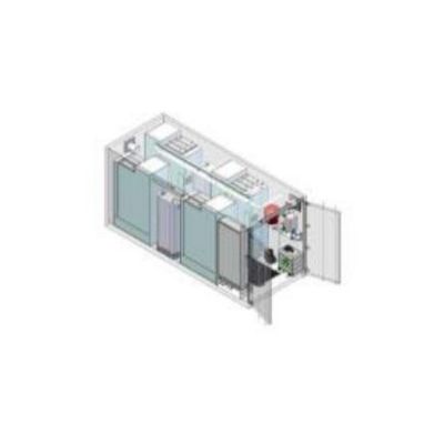 The Container Module TerraBasic 40 could easily be linked to existing heat sources. At the water interface, the water transportation system for feed water, product water and brine can be connected easily. The request for more water could be answered with the usage of additional container modules. The container modules are stackable.