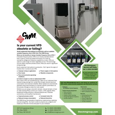 Avoid unplanned production interruptions with an updated VFD. A Variable Frequency Drive (VFD) is an industry standard device used to control the speed and torque of a motor by varying the voltage and frequency supplied to a motor. VFDs are used on a wide range of motors regardless of size. This technology not only offers improved process control--VFDs can result in significant energy savings. Don't ignore these signs of trouble: *improper sizing or application *power surges or interruptions *drive faults *poor environmental operating conditions *obsolete components