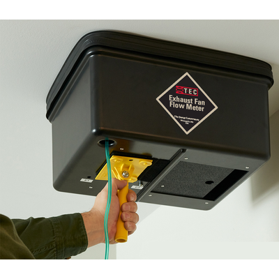 The Exhaust Fan Flow Meter is designed to make quick and accurate measurements of airflow through residential bathroom fans, whole house ventilation fans and other exhaust devices. Smaller, lighter and easier to use than conventional flow measuring hoods.
