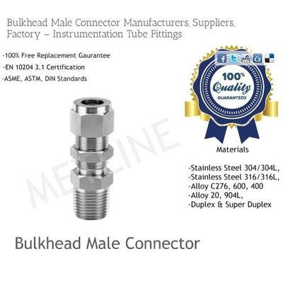 Metline offers one of the largest selections of compression tube fittings in the industry. Metline is a specialized manufacturer of bulkhead male connector (1/8" to 2") in various material choices including stainless steel 304/304L stainless steel 316L Brass, Monel Alloy 400, Titanium, Hastelloy Alloy C276, Alloy 20. 904L and Inconel 600 alloys. Stainless steel 316 L bulkhead male connector and stainless steel 304/304L bulkhead male connector are most widely recommended option for corrosive gases and high purity applications due to its superior resistance, non-reactivity, exceptional durability and high-surface finish properties. It is compatible with most gas types and low-velocity oxygen applications.