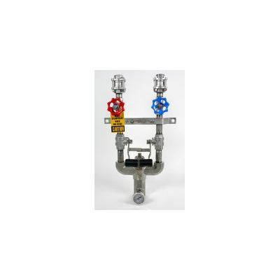 The STVM Washdown Station has been designed to put the safety of your operators first, thanks to its innovative technology. The system utilizes a thermal element located in the downstream leg of the mixing valve. The thermal element is designed to throttle steam flow should the temperature set point be exceeded and will completely shut down at 15°F above set point or if cold water flow is interrupted. The thermal element will not re-open until cold water flow is restored.
