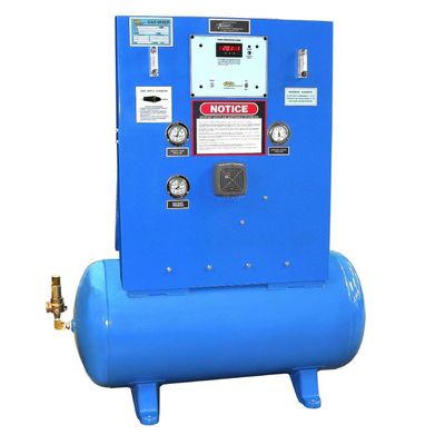 Flow rate capacity of 5,000 scfh for a variety of applications. Continuous gas analysis of the gas mixture with audio/visual alarms standard. Surge tank design will produce a highly accurate mixture from zero flow to full flow, no minimum flow rate requirement to maintain accuracy.