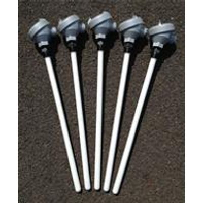 TTEC Series 3000 High Temperature Thermocouple Assemblies utilize ceramic protection tubes with noble metal (types S, R, B) elements. Double & triple tube designs are available for protection against thermal & mechanical shock. Protection tube materials include Mullite, High Purity Alumina & Recrystallized Silicon Carbide for custom multi tube assemblies. These units provide optimum performance at temperatures ranging from 2000ºF to 3100ºF.Type K, 8 gauge elements are also available for measurements to 2300ºF.