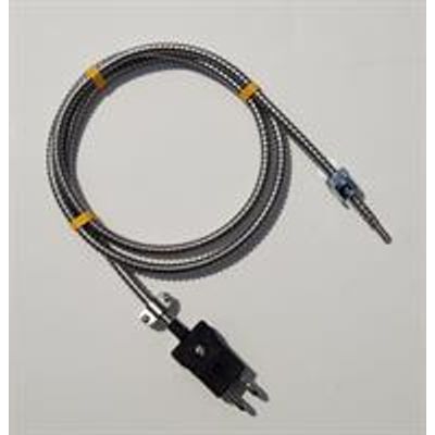 Accurate Temperature Measurements of Magnetic Surfaces. Spring Loaded Thermocouple. Firmly held in place on surface by Magnet. Flexible leads with Stainless Steel overbraid. Miniature Plug Termination standard. Length customer specified. Custom versions available.