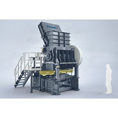 THM‘s Universal Granulator XG is used for single-stage shredding of a variety of different materials. Whether wood, RDF, cable scrap, electronic scrap, metals or other materials, the universal granulator XG performs brilliantly. Thanks to the large inlet opening, the Universal Granulator can shred very large and bulky . Parts to the desired final size in a single operation. A segmented granulating screen is mounted below the rotor. The hydraulically swing-off screen basket allows a quick and easy change of the screen segments. By selecting the screen-hole size, the output grain size is determined.