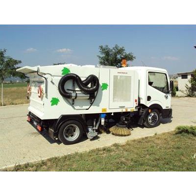 Auxiliary equipment engine 60 HP,4 cycle, turbo Diesel. Sweeping performance with 5-10 km/h 30.000 – 35.000 m²/h. Sweeping path with one side brush 1700 – 2000 mm. Vacuum fan system 3000 rpm. Hopper 3.0 m³ . Water Tank 500 l CrNi A 304 quality.