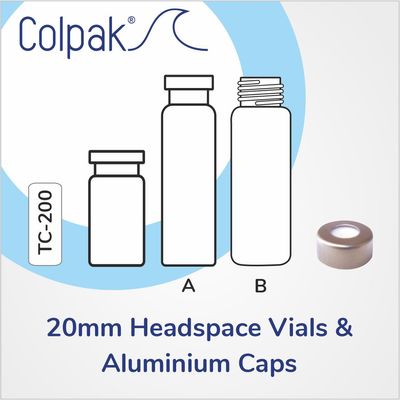 Why Select Headspace Vials? Colpak high quality headspace vials have a bevelled neck for a secure seal, uniform glass thickness for even heat distribution and a stable, strong design for ease of use. They are available with rounded or flat bottom profiles for accurate instrument compatibility. Use with the 20mm headspace caps, septas and seals. All vials are manufacture with USP type 1 glass.