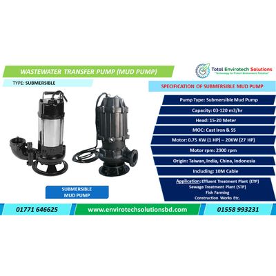 The type of pump varies depending on the quality of the water such as for transfer of ground water, which pump for transfer of muddy water and which pump for transfer of water with lightning.