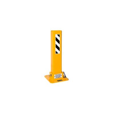 Collapsible Single Post for Maximum Stopping Power and Convenience This single, wide post is the most powerful of vehicle barriers, but can be easily collapsed when a barrier is not necessary. Primarily intended for heavy use, this product is ideal for emergency vehicle and pedestrian pathway access. Along with its powerful base, this barrier comes with a lifetime warranty against failure due to impact, and the bright, long life safety yellow paint is eye-catching and noticeable. This sturdy security barrier is collapsible for easy vehicle access, and is extremely low profile when collapsed. The padlock guarantees that your single post bollards are secure in the upright position, but you can easily control the flow of traffic by removing the padlock and lowering the bollard. Use a few security bollards in combination to create a traffic control system that is simple, safe, and secure.