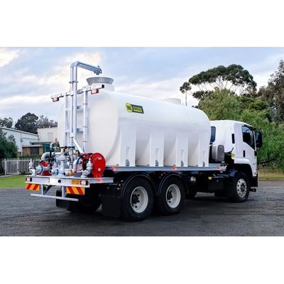 15,000 UV stabilized Poly tank made from virgin polyethylene and 20 Year Warranty. Fitted with the Liquid Locker Baffle System. Hot Dip Galvanised Frame & pipework, built specifically to suit the truck chassis. Choice of variable speed Hydraulic, Diesel or Petrol motors. 1600L min Australian Made Cast Iron Pump. 3″ Pressurised and/or Gravity Dribble Bar. 3 rear spray heads – one central 3″ magnum spray head and two 1.5″ left and right magnum spray heads An easy-to-use in-cab controller box. Rear bumper incorporating a taillight board with LED tail and number plate lights. Heavy-duty 20m Spring Rewind hose reel. Hydrant Fill Lid fitted with a 6-inch air-gap which complies with Water Authority Regulations. 2x LED Rear Facing Work Lights & Flashing LED Beacon. Under Body Hose Storage for Easy Access. VASS Plates -Once finished at the factory, the trucks are engineer approved and ready for final registration plates.