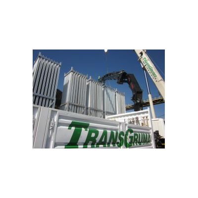 Management of the crane by radio remote control. Maximum horizontal reaches: 16.55 m. Maximum load capacity on foot crane: 4175 Kg . Maximum width in working position: 6m.