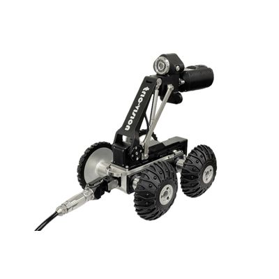 The TVS-8000 Amphibious Inspection Robot features a spiral propulsion system, ideal for navigating diverse environments such as water surfaces, mud, and swamps. Equipped with a 360° pan-tilt-zoom camera, it delivers high-definition imaging for thorough inspections. Its Extreme-bright LED array is optimized for large pipes, canals, and box culverts. Additionally, it can be outfitted with a sonar probe to capture underwater images, facilitating the assessment of cross-sections and sediment depth in underwater pipes and canals simultaneously.