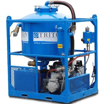 Triton`s Solid Recovery Package is used to collect solid product, such as sand, blasting media, grain, limestone, cement dust, coal dust, etc. These solids products are collected through the use of the Triton Solids Recovery Package, which includes a Collection Tank, Baghouse, and Triton Vacuum Unit, at rates of 500-1000 lbs/hr.