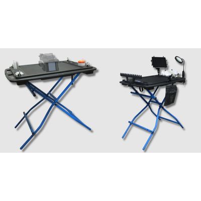 U-TECK is proud to offer the next generation fiber splicing workstation to support fiber splicing at the splice or optical network terminal (ONT). The NEW! Fiber Optic Splicing Workstation has a larger work surface, but offers the ability to fit in most work sites. It can be used as a freestanding workbench or in narrow manhole environments, inside tents, central office work, and light enough for aerial work in a bucket or attached directly to the cable support strand by removing the work surface from the stand. The heavy duty, steel legs lock firmly to the work surface and stands at a generous 31-1/2 inches tall, keeping your table at a comfortable working level. Our unique Cable Management Bracket fits securely on either side of the workbench, allowing jacketed strands to stay put and separated until you need them.