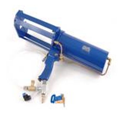 The dual cartridge spray gun is pneumatically driven and is designed to dispense the 1:1 100% solids QWIK LINER® coatings held in disposable cartridges.