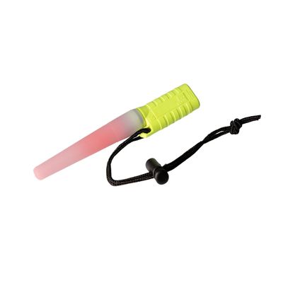 Be seen at night by fellow divers and divemasters with this dependable high visibility red personal marker beacon. Less than 6" in length, this personal marker beacon will easily go with you anywhere and is an essential diving safety tool. The battery life is excellent, lasting over 24 hours on 2 AAA batteries so you can always rely on this beacon to light up.