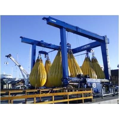 Water Weights are ideally suited for testing boat hoists and rubber tired gantries. The development of Water Weights bags has increased greatly the practicality, economy and safety of providing proof load testing in many applications. In addition, certain proof load testing situations only become feasible with the use of Water Weights. With bags weighing only some 2% of achievable load, floor loading restrictions are rarely a problem. Bags are ideally suited to inaccessible lifting points.