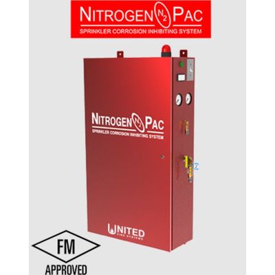 The FM Approved UNITED Fire Systems NITROGEN-PAC™ Model SC-W is a completely self-contained nitrogen-based sprinkler corrosion inhibiting system. The unit is factory assembled and tested, and is ready for connection to sprinkler system riser(s). The system contains an air compressor, filters, and a membrane device to perform nitrogen separation. The system provides dry air for system initial fill and nitrogen for filling the interior of a dry or preaction sprinkler system with nitrogen at 98% or greater purity.The Model SC-W Cabinet contains the basic hardware for proper nitrogen generation, a manually-operated valve for directing the air compressor output to the nitrogen generation system or sending compressed air directly to the cabinet outlet, and manual adjustments for commissioning.