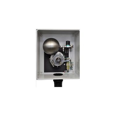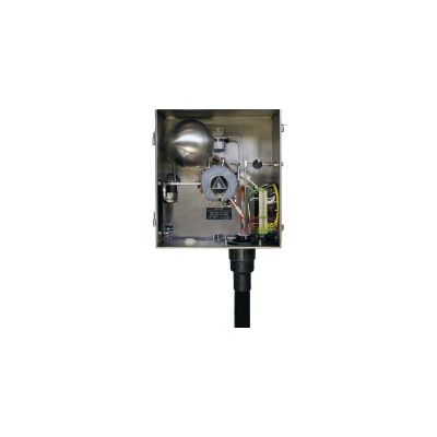 The Model 270S is a Heated Stack Filter Assembly consisting of the filter body mounted in an aluminum protective housing. An optional blowback system is provided to allow a blowback to occur on command from a computer, data logger, PLC or external switch mounted in a safe area. A 125 watt heater is mounted on the outside of the filter cavity. The heater holds the temperature of the filter near 340°F (171°C). A bi-metallic thermal switch mounted to the filter body keeps the temperature from exceeding 350°F (177°C) by opening the circuit before that temperature. An optional independent thermocouple can be provided as a means to measure and transmit or record the temperature of the filter. A second thermal switch, set at 225°F (107°C), is provided to be used as an alarm contact if the temperature drops below the switch temperature.