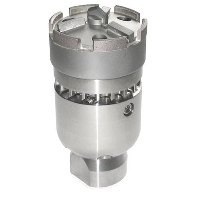 The Diamond Face cutter is an extremely aggressive specialty tool perfect for total blockages and some hardened mineral deposits. Turbine technology and 3D fluid mechanics spin a cutting head equipped with diamond bits and sharp edges approximately 10,000 rpm’s boring a hole and opening the blockage. This nozzle comes standard with one-piece ceramic inserts and can be used with recycled water.