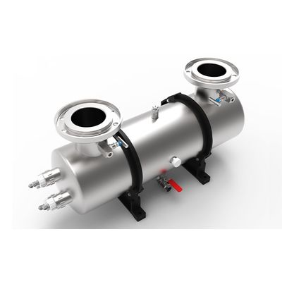 DFI 230 - Max flow: 25,55 m3/h, Power: 2X130W cabinet, In/Out: 2’’1/2 MA flanges. 316 L stainless steel chamber. Max. pressure 6 bars (higher pressure on demand). Water temperature 0 to 40 °C. Visual control cell. Flanged connections. Quartz sleeve. Sampling valve