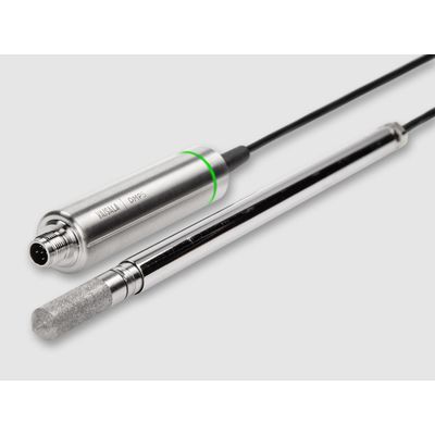 Vaisala DRYCAP® Dew Point and Temperature Probe DMP5 is designed for in-line humidity measurement in industrial drying applications with high temperatures and a wide dew point range. The long and robust steel probe and optional installation flange allow easy installation with adjustable depth to reach through insulation, for example in ovens.