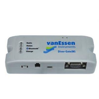 The Diver-Gate(M) is a portable low-power device that communicates wirelessly with the Diver-DXT to retrieve data from Diver dataloggers within a range of 500 meters. The Diver-Gate(M) connects to a laptop equipped with Diver-Office.