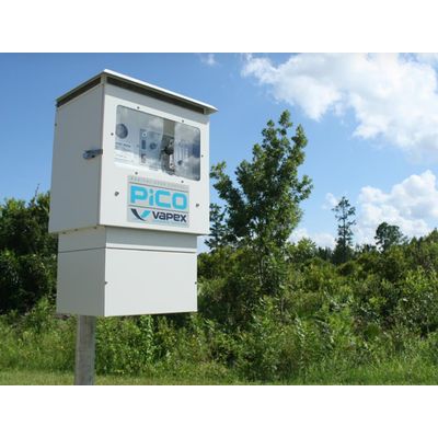 Vapex has taken the already small footprint of the incredibly powerful NANO and halved it to create the PICO. The PICO treats high concentrations of odors in small spaces like manholes, small lift stations, wet wells, and junction boxes but requires a mere 1.5 gallons of water per hour and uses about the same electrical power as a refrigerator.