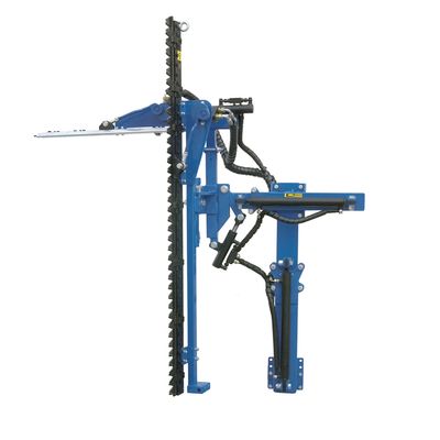 Vertical bar with single blade cutting bar (working cut 2000 mm) Upper bar with single blade cutting bar (working cut 850 mm) Hydraulic tilt adjustment with 1 piston Hydraulic height adjustment with 1 piston Hydraulic upper bar adjustment with 1 piston Side bar (shifting) hydraulic adjustment with 1 piston Antishock on vertical bar 5-controls hydraulic distributor Powered by 1 hydraulic engine (it requires 150 bar pressure and 16 litres/min oil) Pipes equipped Iron main frame Machine weight 160 kg GALLERY ACCESSORI.