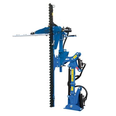 180° double hydraulic ram with two hydraulic cylinders Tank with pump. Three point hitch safety frame attachment. Limit switch brake. Hydraulic lock.