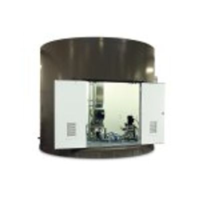 VeloDyne is a leading silo manufacturer producing both single and two piece silo systems in industrial and municipal applications. This includes but no limited to soda ash silos, PAC silos, and lime silos. Our two piece silo system design provides a solution which allows for equipment to be installed and tested upright in-house without delays in a “weather-free” environment. This silo design reduces start up time and installation labor involved in running wire, conduit, and piping inside the equipment room. During installation of the silo feeding system equipment room, all piping and conduit are ran under the floor grating, against the silo wall, or overhead on the feeder bridge to reduce trip hazards for operators leaving the feed storage silo spacious and organized for operation. Concave mix tanks are provided also maximizing the operation space inside the control area.