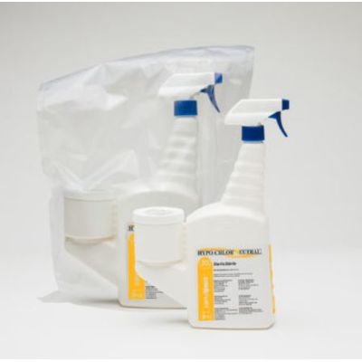 Neutralized Sodium hypochlorite 0.25% solution, attached activator, SimpleMix, 16 oz Attached Trigger Spray. HYPO-CHLOR Neutral 0.25% is a neutralized sodium hypochlorite solution formulated with Water for Injection. Designed for all pharmaceutical, biopharmaceutical, biotechnology, health care, medical device, and diagnostic manufacturing cleaning rotations that demand a neutral pH and sterile sodium hypochlorite solution adequate for maintaining a clean and critical environment. Compatible with most hard, non-porous, environmental surfaces and while reducing the consequences of corroding, rusting, or pitting.