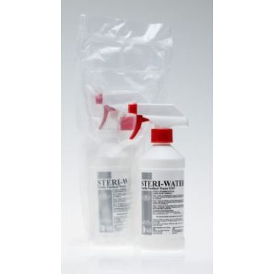USP purified water, 16 oz Trigger Spray. STERI-WATER is a quality water which is designed for operations that require a USP grade water for chemical formulations, cleaning, and rinsing. Not for human or animal injection, diagnostic, or therapeutic use.