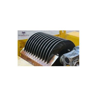 The Drums are driven by Air Motor The Skimmer vessel is provided with lifting 4 points to assist placing at convenient place. Fractional hp dc motor to 25w apprx, driven through 3 phase, 415 VAC, 50 Hz Pressurized air is supplied through pneumatic hoses from compressor on shore. Special scraping Wipers wipes away the oil and the oil is directed to the collection tank on the vessel. The bottom of the tank is connected to Oil suck back hoses through which oil is transferred to the vacuum chambers on the shore. The vessel is also fitted with plastic balls to assist buoyancy and keeps the assembly floating. Roller size 300 mm dia x 400 mm to 800 mm L (appx) Material of Construction Vessel - FRP/SS304/SS316 Drum - Oleophilic (Polymer/SS304/SS316) Wiper - Teflon (PTFE) Oil Collection Tube - Flexible PVC Braided/Rubber HoseVH - SINGLE Drum Skimmer